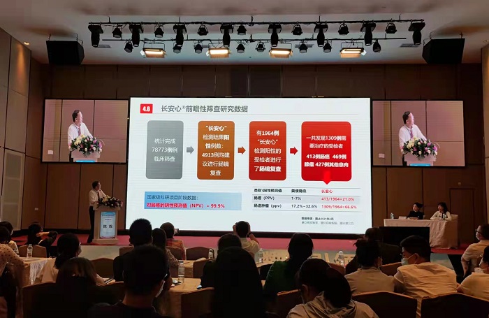 廣東省人民醫(yī)院協(xié)和醫(yī)療中心主任、廣東省醫(yī)院協(xié)會醫(yī)院健康管理專委會主任委員陳煉以《中國癌癥早篩的機遇與挑戰(zhàn)》為題作主題演講時,重點介紹了糞便SDC2基因甲基化PCR檢測對結(jié)直腸癌早期診斷的效果。