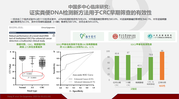 楊迅教授還對(duì)人類SDC2基因甲基化檢測(cè)試劑盒(熒光PCR法)的前瞻性篩查研究數(shù)據(jù)及臨床案例的進(jìn)行了解讀,充分證明了該技術(shù)在臨床應(yīng)用的效果。