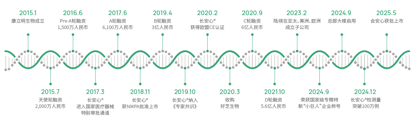 公司擁有國際前沿的科研能力和眾多獨立的知識產權,未來還將繼續加強,并將成果轉化為生產力。除了腸癌糞便基因檢測產品(長安心?)和肺癌痰液基因檢測產品(會安心)之外,公司還在研發膀胱癌、肝癌等腫瘤的無創檢測產品和即時檢測設備,并已取得令人驚喜的階段性成果。目前,康立明生物已完成多輪優質風險投資,并獲得了各級政府的大力支持,已成為行業內備受關注的明星企業。我們本著“人類健康,我之使命”的崇高理想,力爭在慢性病尤其腫瘤的早診早治、預后監測等領域取得突破和發展,持續造福人民。